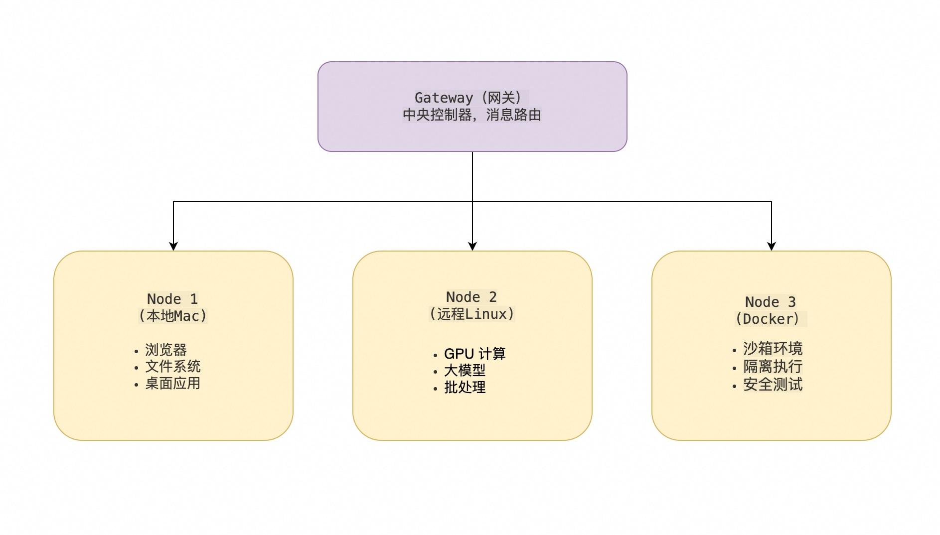 Node(节点) 是 OpenClaw 架构中的一个执行单元,代表一个可以运行 AI 代理的计算环境。