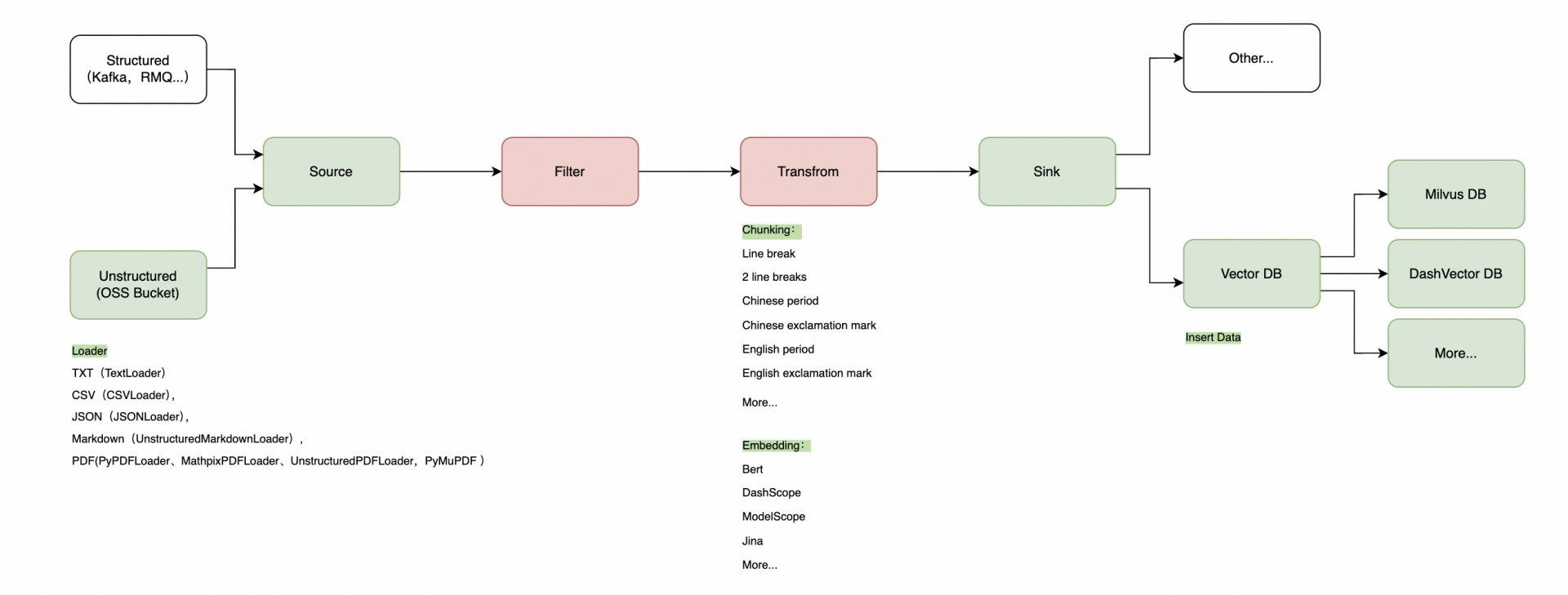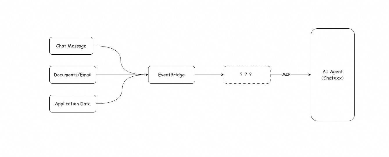 早在 2024 年 6 月,EventBridge 就已经进行过一次关于 AI 数据的探索。当时瞄准的场景是类似 unstructured 这样的 RAG 数据同步,只是加了 “多源” 这个卖点。但由于产品能力太吃市场,这个单点 Data 能力沉寂了很久很久都没有找到自己的“钉子”。(源自一句话:拿着锤子找钉子)。整个产品的架构逻辑如下: